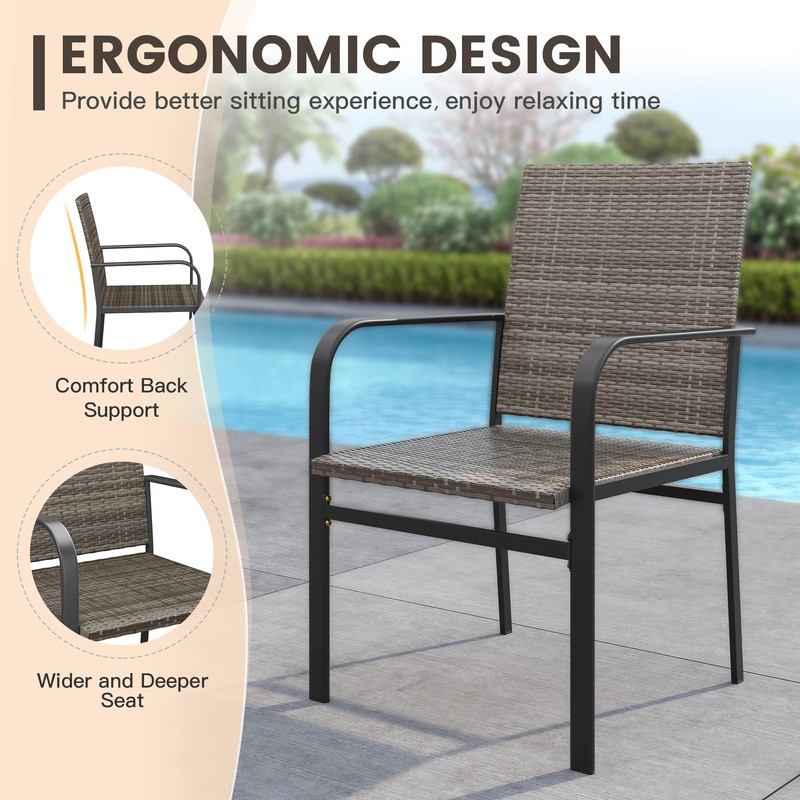 - VERSATILE SEATING:The Patio rattan chair can be paired with a variety of outdoor tables and it perfect for various occasions, whether it's a backyard barbecue, garden parties, a family gathering, or a simply relaxing on the patio.