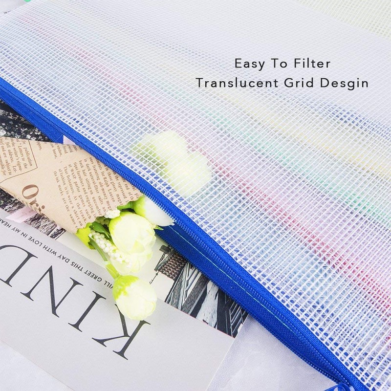 Vicloon A3 Document Wallet File Pouches with Zip Closure Mesh Plastic Zipped Pocket for Files, Paper, Documents, Cosmetics, Homework and Travel Accessories
