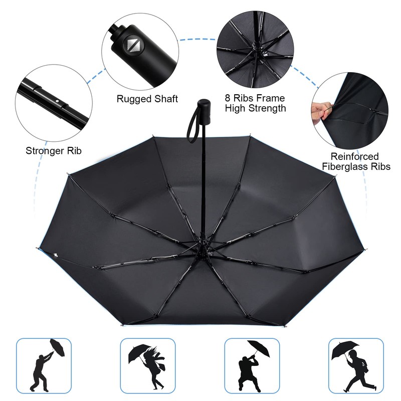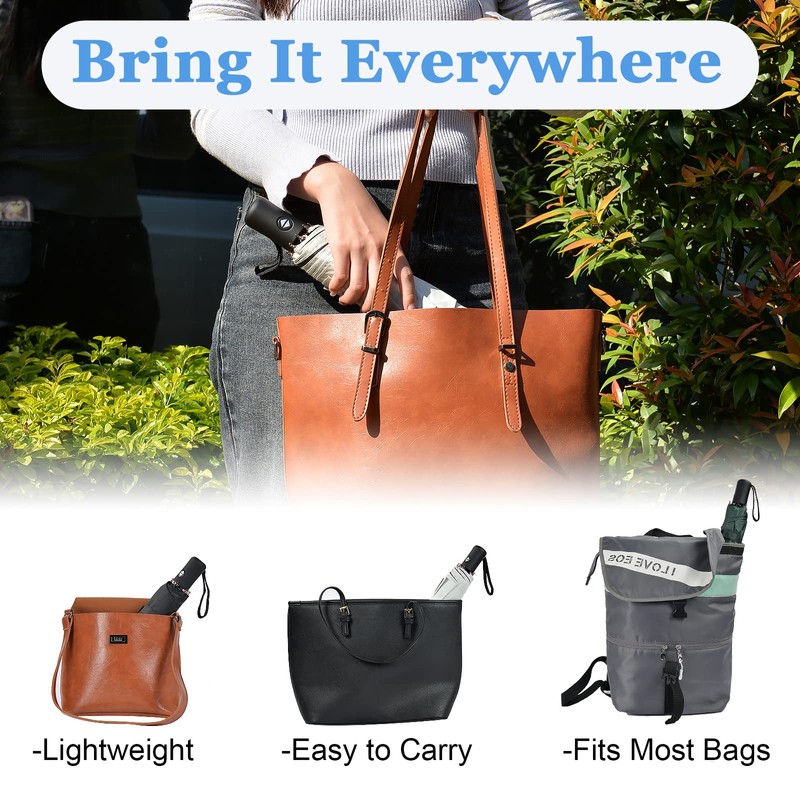 - ☂【AUTOMATIC OPEN/CLOSE FUNCTION】The travel umbrella opens and closes automatically, and you can easily open and close it by pressing a button with one hand. Easy to store in backpacks, suitcases, bags, and is perfect for travel and outdoor activities