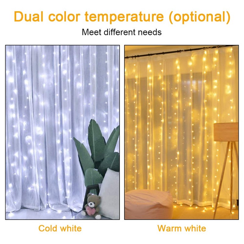 - 🌟【High quality 300 LED Curtain Lights】Curtain Lights are 9.8ft.x9.8ft, these fairy string curtains lights are made of copper wire, and contain 300 pcs super bright LEDs. It is completely sealed, very safe, soft, and firm, The Curtain Light can be cut freely without affecting the rest light, so you can DIY any decoration you like.