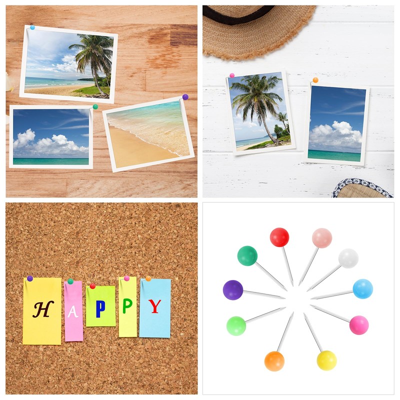 These pins can be used to secure notes, photos, papers, etc. to cork boards, bulletin boards, blackboards, and can also be used for map markers. They are great tools for home, office and school