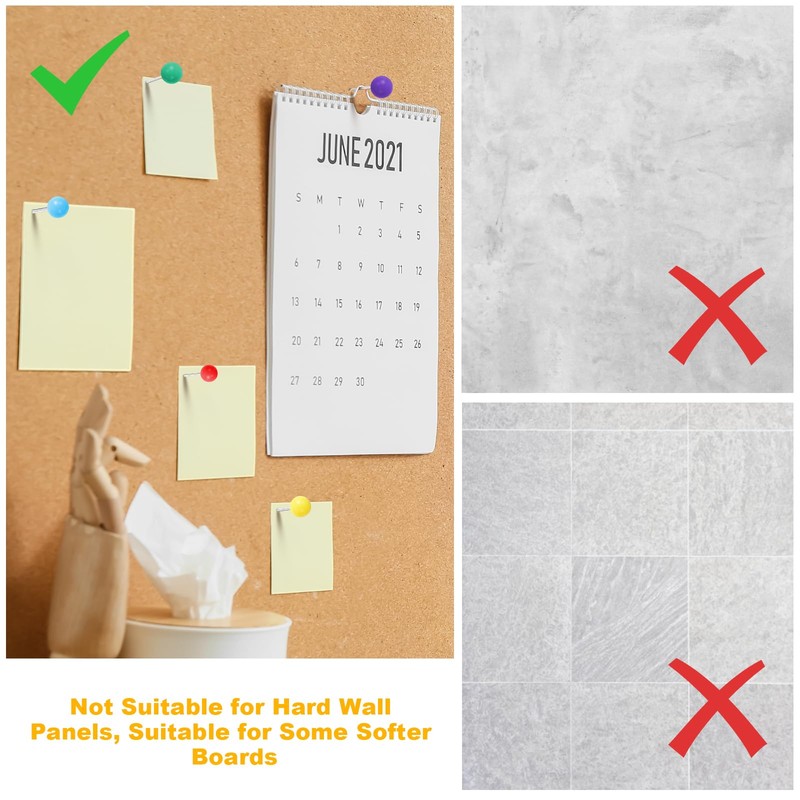 • 📍【Wide Uses】These push pins are suitable for bulletin boards, bulletin boards or foam boards, cork board notes, map markers, paper holders, photos, documents, posters, DIY decorations, etc. They are essential items for schools, homes and offices .
