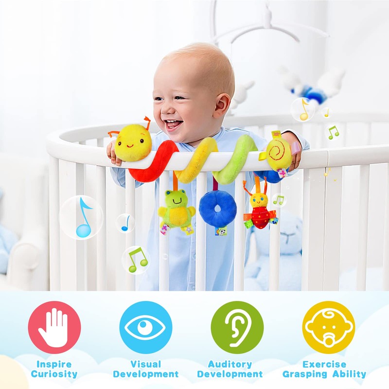 - 👶【Multifunctional】: Spiral stroller toys are perfect for entertaining at home or on the go. Stroller Seat Stroller toys can be wrapped around a stroller bar or car seat handle and can be placed in a variety of other places, cribs, travel or elsewhere.