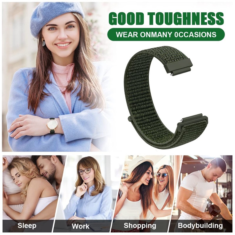 Vicloon Unisex Nylon Fabric Watch Strap, 16 mm/18 mm/20 mm, Smartwatch Strap with Quick Release Fastener, Replacement Velcro Watch Strap, 16mm