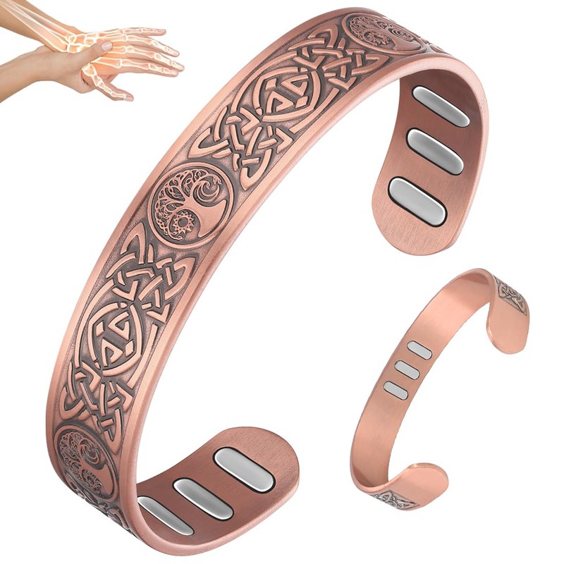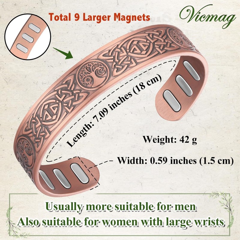 Vicmag Copper Bracelet for Men 9X Strength Magnetic 99% Pure Copper with 5000 Gauss Magnets, Tree of Life Present Box Adjustable(Celtic & Sun Moon Tree)