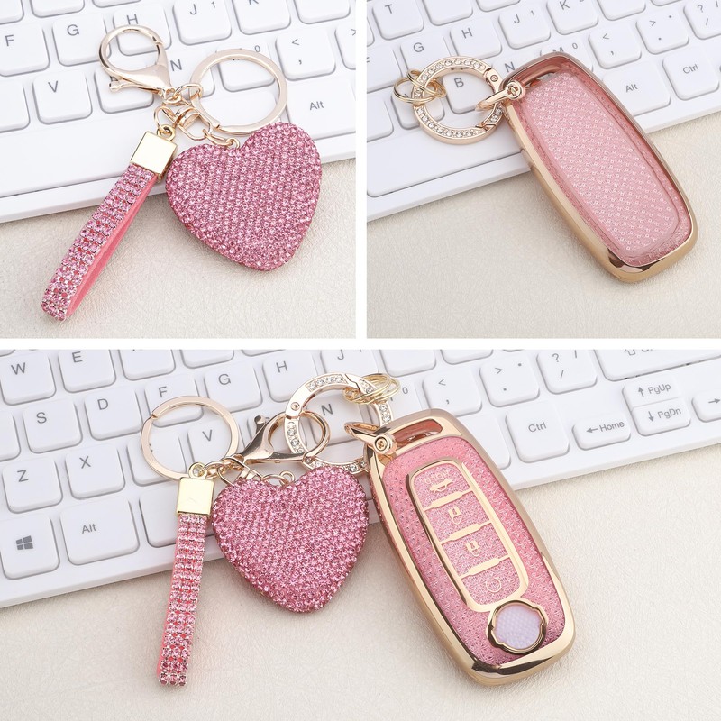 - Package including: 1PC key case, 1PC Diamond Bling Keychain and 1 Box. Bling keychain perfect for car, home keys or as Birthday, Thanksgiving, Christmas gift to your friends and families.