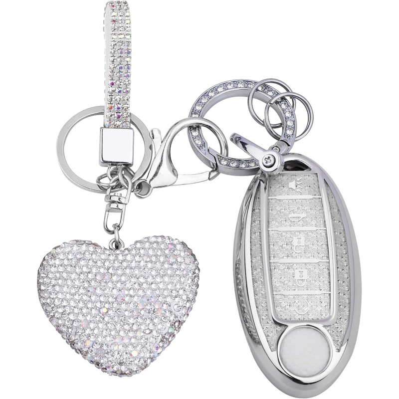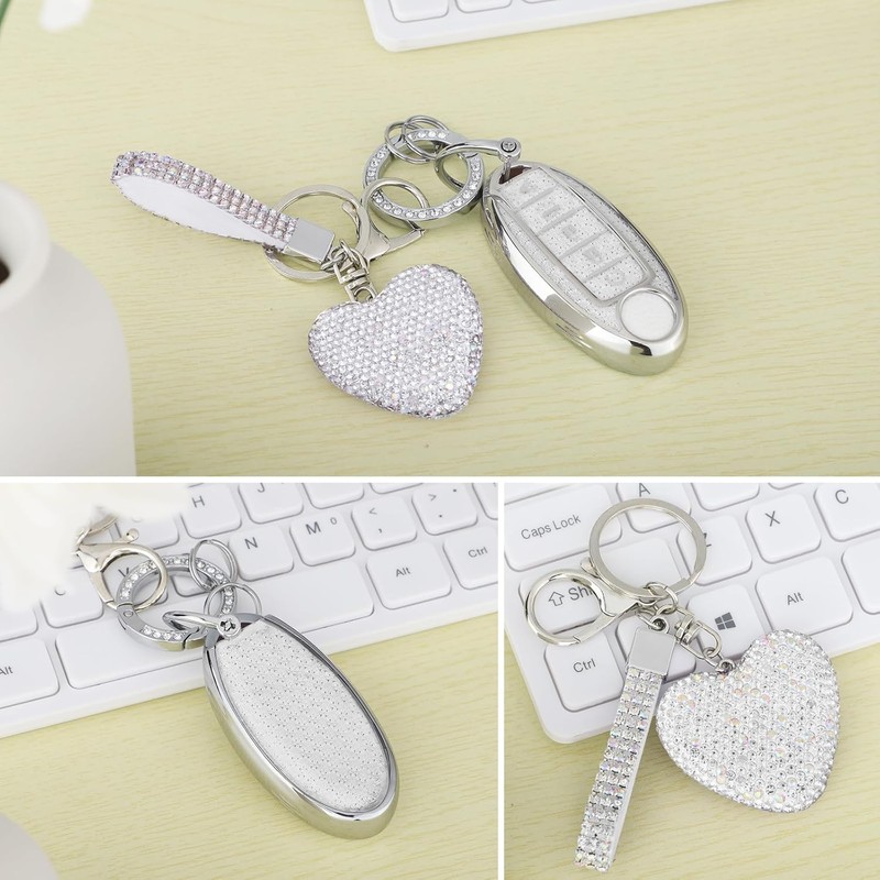 Vicoca for Nissan 5 Buttons key fob cover with Diamond Heart Keychain, Car Ac...