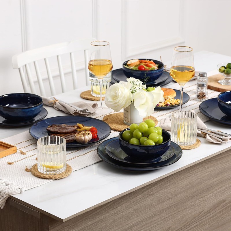 • PERFECT SIZE FOR MULTI-PURPOSE: This 12-piece Blue dinnerware set includes 10-inch dinner plates, 8-inch salad plates, 26oz cereal bowls, service for 4 people. Not only suitable for your own family use, but also as a great gift ideal for housewarming, wedding, birthday, family reunion, or any other party.