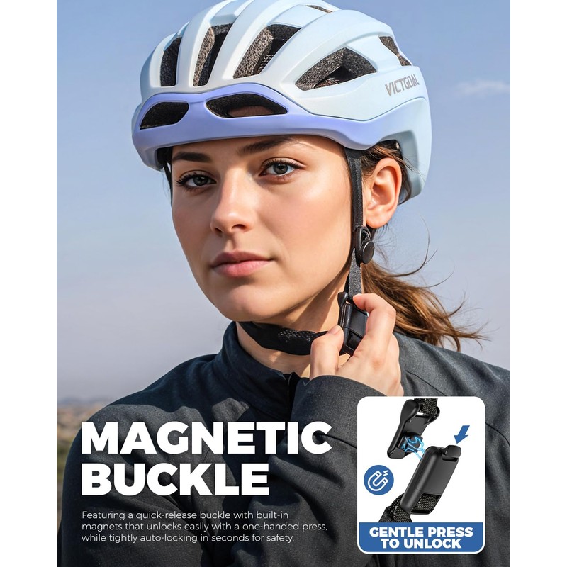 - Lightweight & Maximum Protection: The road bike helmet is weighing as low as 265g and made of high-density EPS foam and impact-resistant PC shell, which meets the safety certification standards and can greatly absorb the impact. Providing you with all-round safety protection even when riding at high speeds.