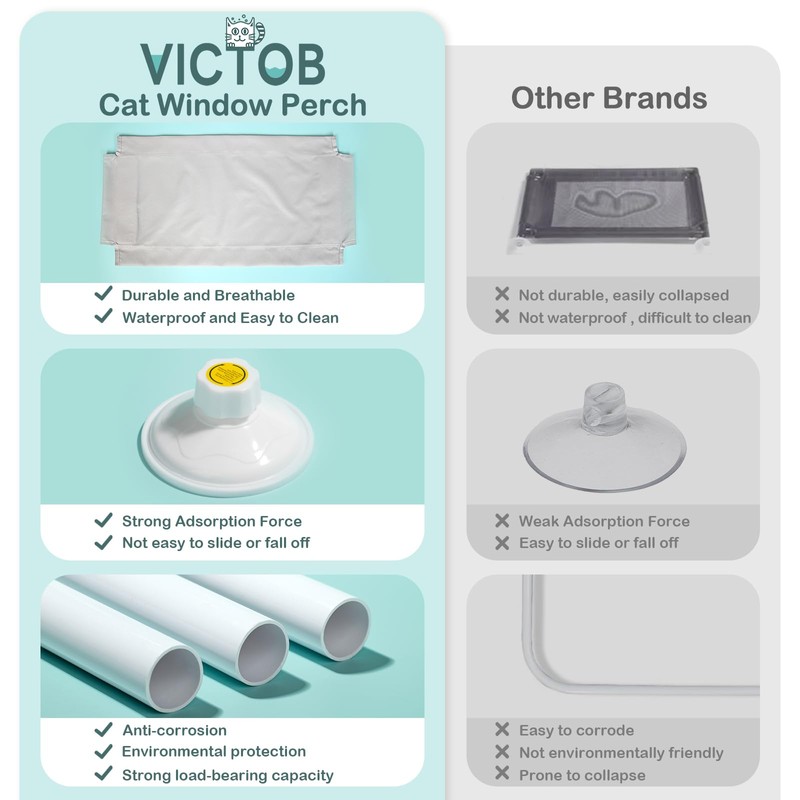 • Durable Oxford Cloth & Sturdy Frame: To ensure the comfort of cats, this cat window hammock uses wear-resistant and stretch-resistant Oxford cloth material, with a sturdy frame structure to ensure that it will not deform after long-term use. Because of its strong bearing capacity, it can stably support cats within 55lbs to enjoy a good rest time by the window