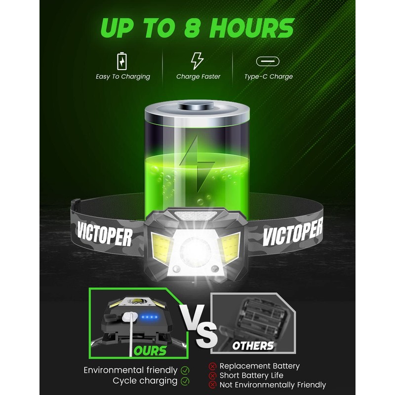 Victoper Rechargeable Headlamp 2 Pack, Motion Sensor Head Lamp with Red Light, 8 Modes Super Bright LED Headlight, Waterproof Head Flashlight for Outdoor Camping Hiking Running Fishing Hunting