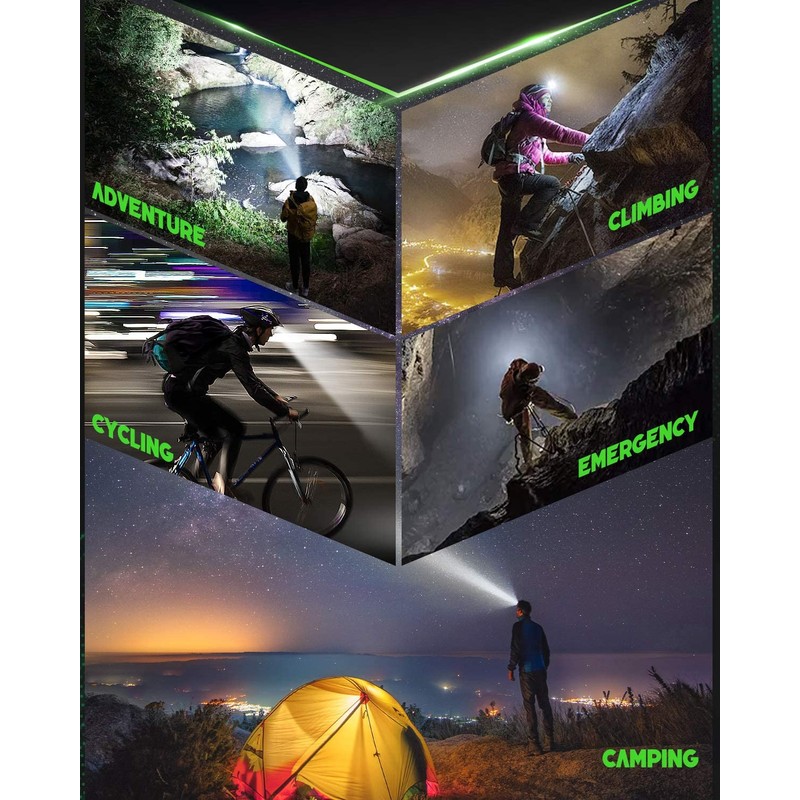 - SUPER BRIGHT : Equipped with advanced LED light chip, our headlamp at 1200 lumens provides strong light and other 5 modes of light in the dark for you. 90-degree-adjustable design of our head lamp let you to see the ground easily and clearly, bringing more convenience.