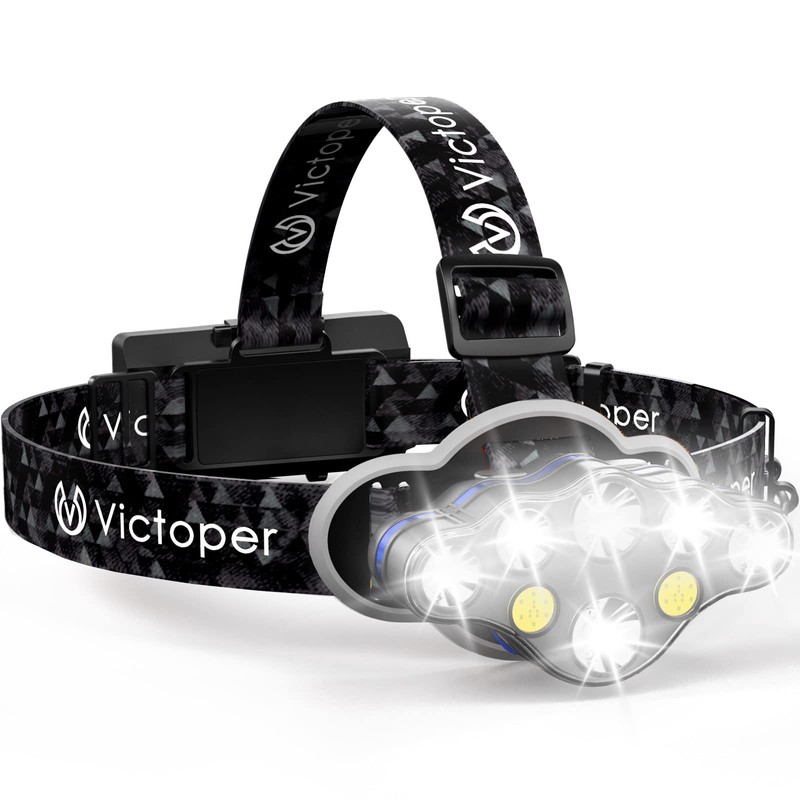 Victoper Rechargeable Headlamp, 8 LED 18000 High Lumen Bright Head Lamp with Red Light, Lightweight USB Head Light, 8 Mode Waterproof Head Flashlight for Outdoor Running Hunting Camping Gear, Black