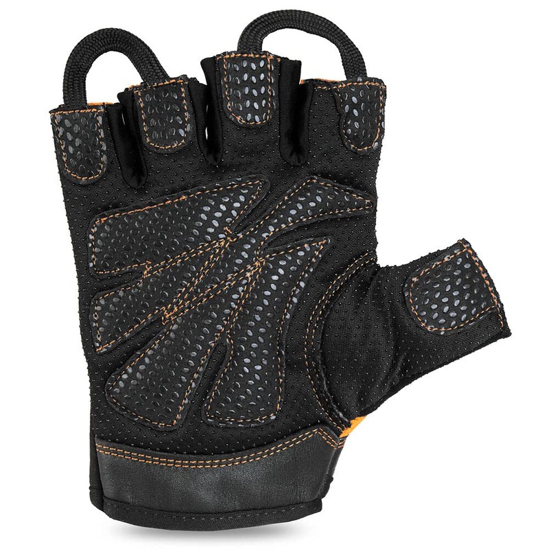 Victor Fitness Fingerless Leather Men's Weightlifting Gloves with Full Palm Protection - Perfect for Weight Training, Bench Press, Deadlifting, Pull-Ups (Medium, Black/Orange)