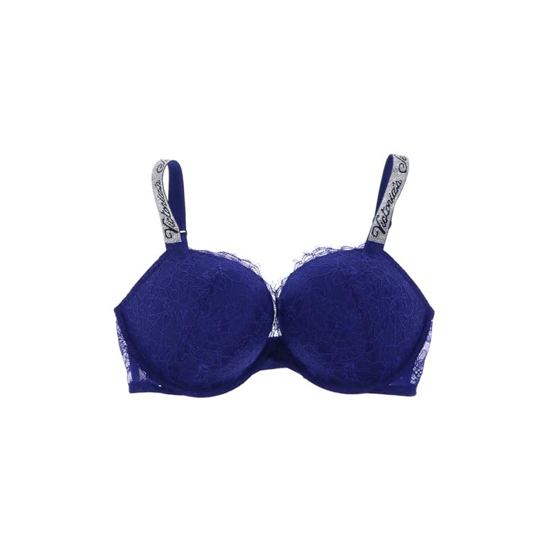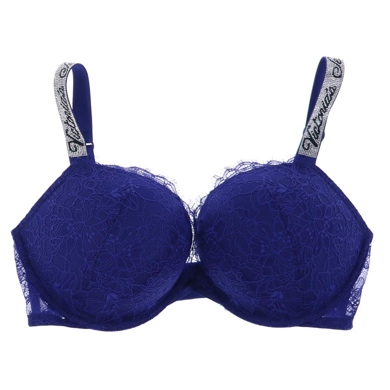 Victoria's Secret Bombshell Add 2 Cups Rhinestone Straps Bra (Navy, 32D)