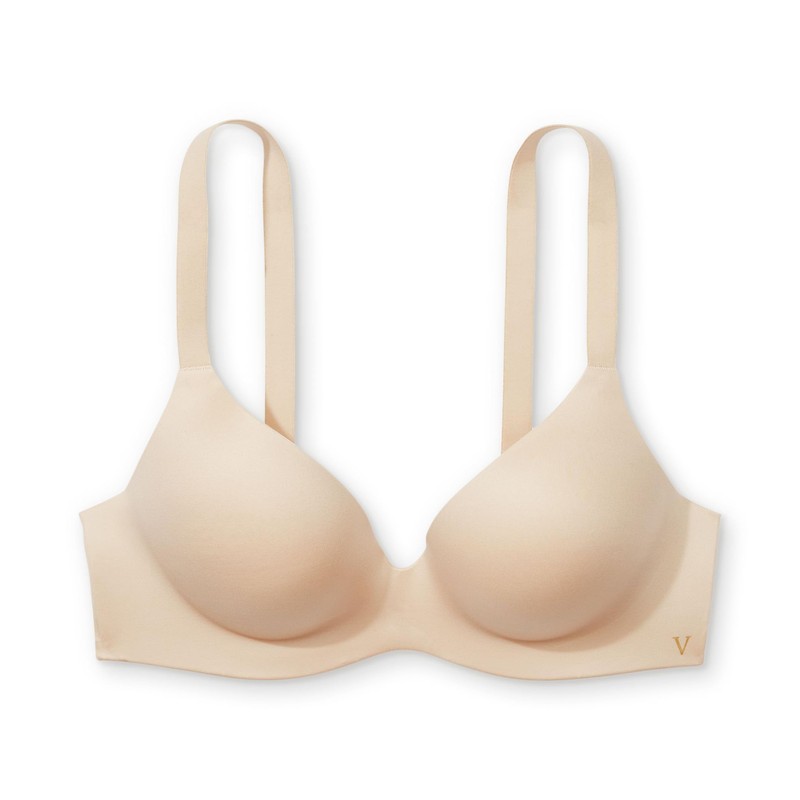Victoria's Secret Infinity Flex Push Up Bra, Seamless Bra, Wireless Bra, Full Coverage Bra, Back Smoothing Bra, Padded Bra, T Shirt Bra, Bras No Underwire, Comfortable Bras for Women, Beige (36DDD)