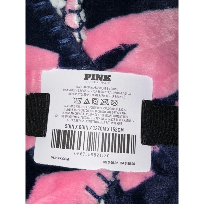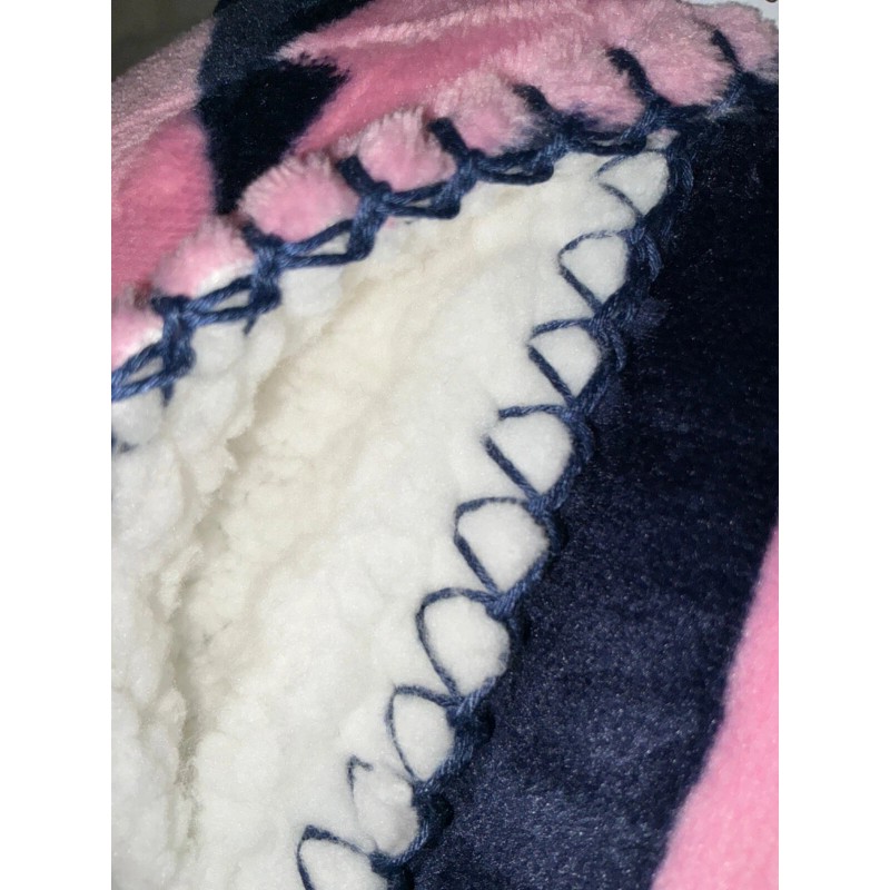 Victoria's Secret Pink Sherpa Blanket Navy Blue Pink Tulip Logo 60" x 50" 💗💖💗