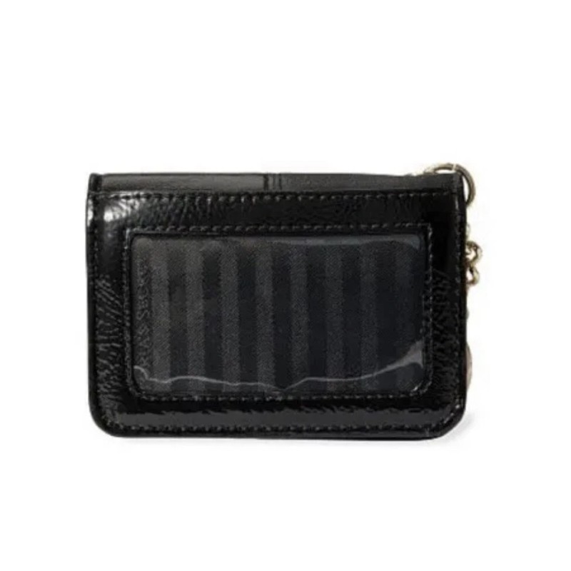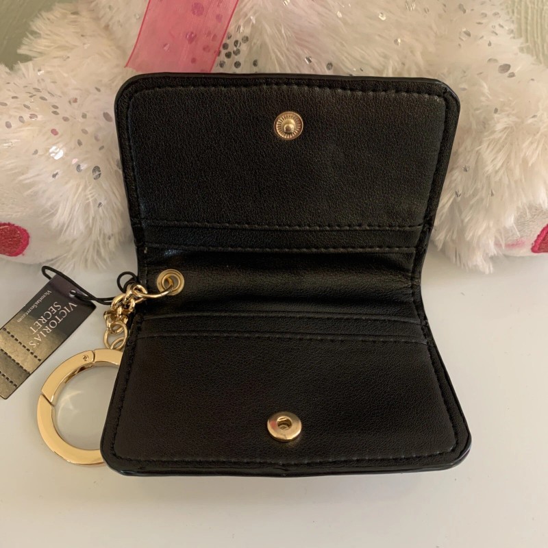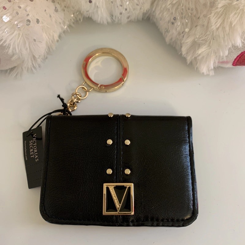 Victoria's Secret Soft Foldable Card Case ID Wallet Keychain Black Stud V Logo