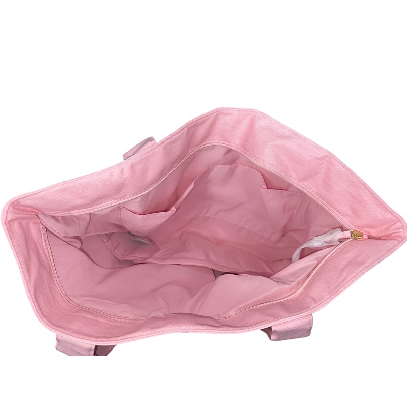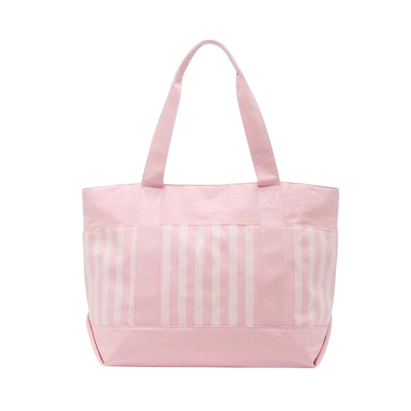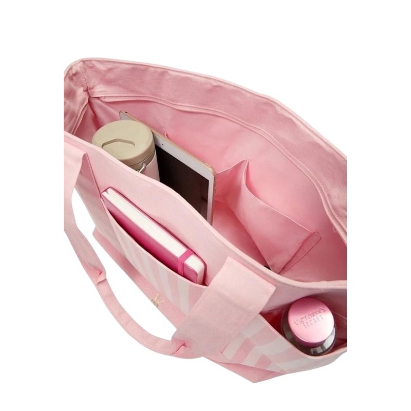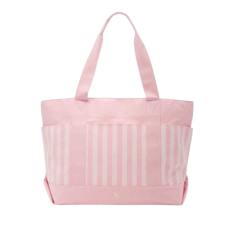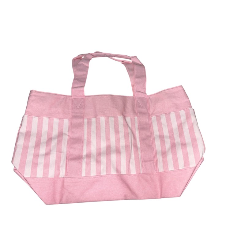 Victoria's Secret Striped Weekender Canvas Zipper Tote Beach Gym Travel Zip Pink New