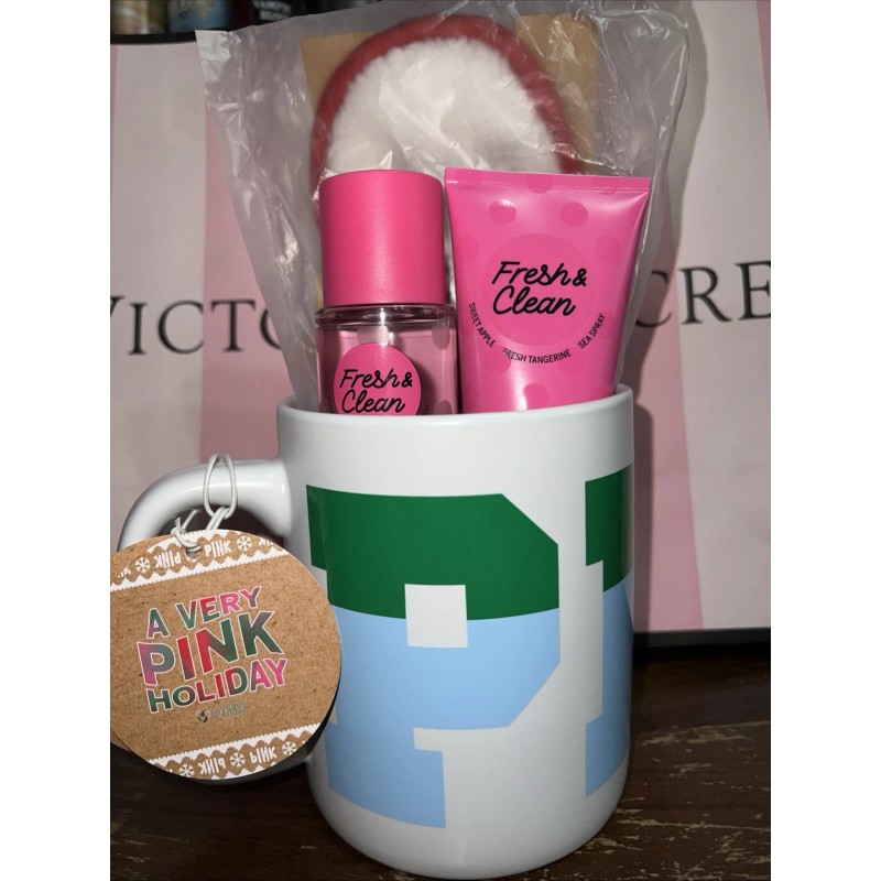 Victoria’s Secret PINK FRESH & Clean Big XL Mug Gift Set With Eye Mask.