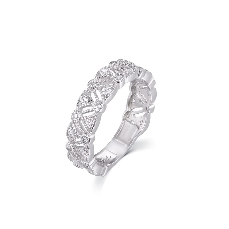 Victorian Design Ladies Hallmarked 925 Silver White Sapphire Eternity Ring Sizes I to W (W)
