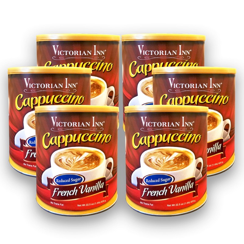Victorian Inn Instant Cappuccino - French Vanilla - Reduced Sugar - Creamy & Delightful Coffee Mix - Great Hot, Cold, or Blended - Ideal as Coffee Creamer - 1.4 lb (Pack of) 6