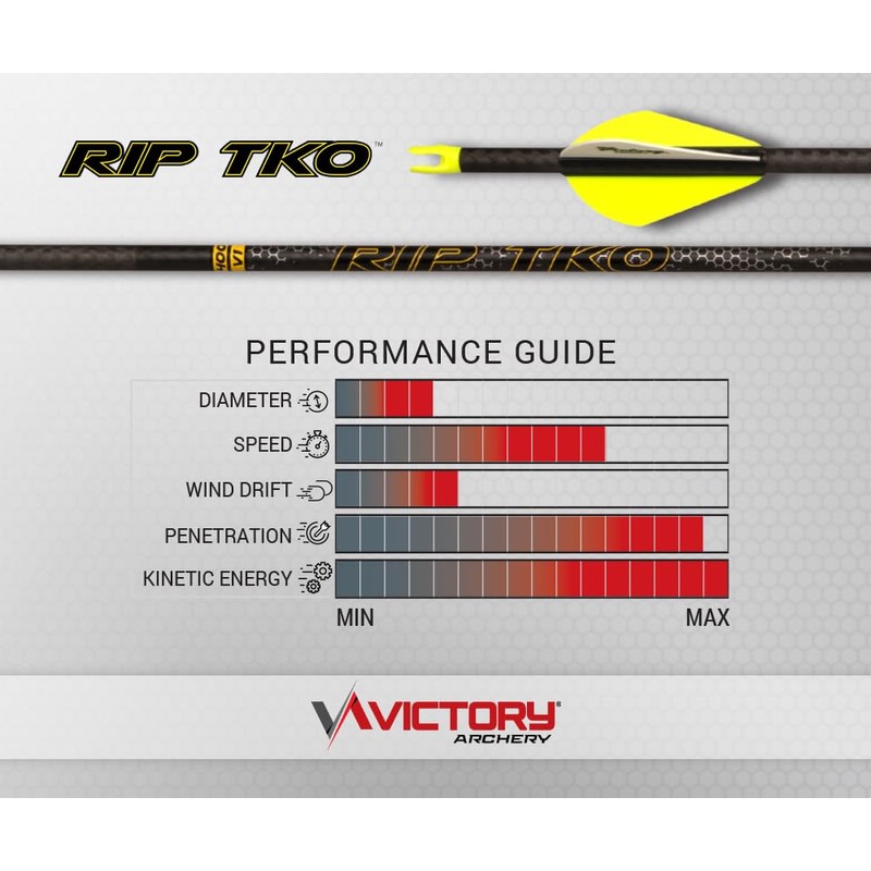 Victory Archery RIP TKO 0.204" Small Diameter Hunting Arrow (Spine: 250, 6 Pack Fletched, Straightness ± 0.001 - Elite - Yellow)
