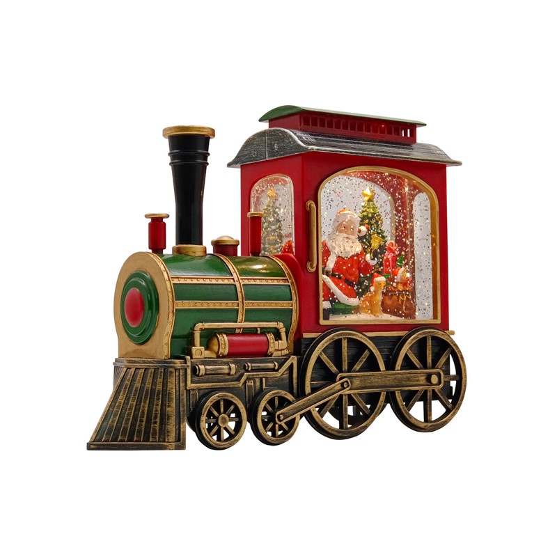 Victory Creative Christmas Holiday Illumination Santa & Xmas Tree in Train Musical Water Globe 7.75" H x 9.5" x 3" Glitter Spinner Battery Operated Timer & USB Xmas Snow Globe Light Up Home Decor