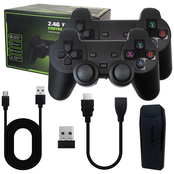 - Support 2 Players: Comes with two 2.4GHz wireless controllers that provide stable and almost delay-free connections. Share fun with family/friends. Play games simultaneously and enjoy a cable-free gaming experience with a maximum connection distance of 32.8 feet. (Note: AAA batteries for the controllers not included in the package.)