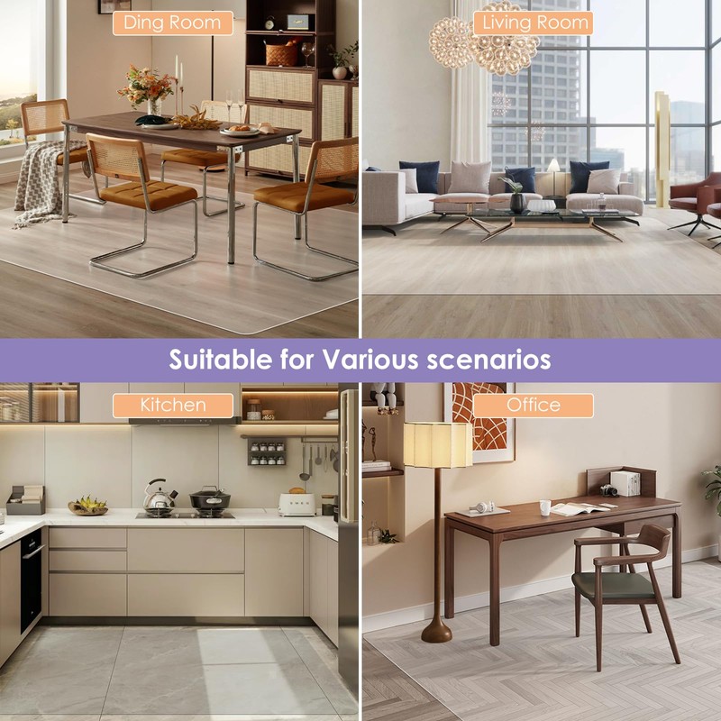 - Protect Your Hard Floor: This clear floor mat is made of premium PVC material, so it can protect your floor from spills, scratches and dents that come from falling objects or chairs and reduce the noise. The large floor mat for dining room provides extensive coverage and reliable protection. Durable yet comfortable, it's ideal for high-traffic areas.