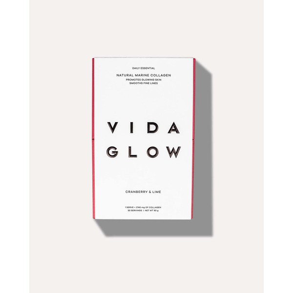Vida Glow 天然マリンコラーゲン | 輝く肌を促進 | 細いラインを滑らかに | クランベリー&ライムフレーバー | 30 x 3g