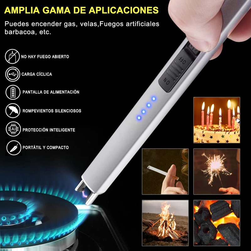 - Multiusos: El encendedor eléctrico tipo plasma se usa en la casa para estufas de gas, velas de cumpleaños, aniversarios y festivales, es una herramienta útil al aire libre como barbacoas, campamentos, fuegos artificiales incluso supervivencia