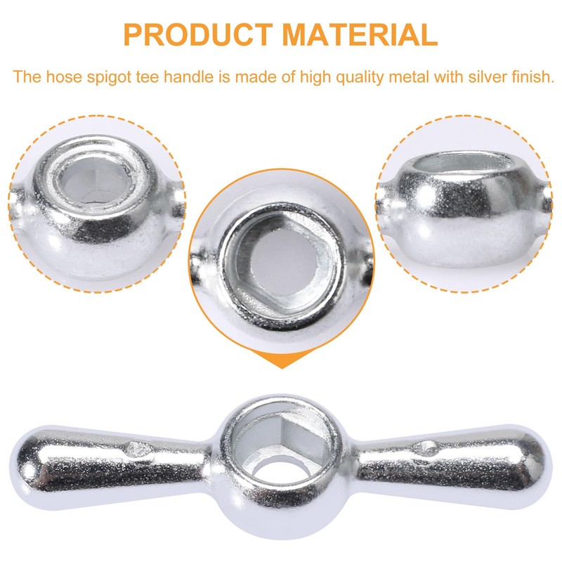 tee handle is made of durable metal for long-lasting use, featuring a square broach to provide a secure fitting to a post The size of the faucet switch: 1*1*1 inch, manual measurement, please allow slight error. Please make sure the product size meets your requirement Tee handle For most external hose valves Outside faucet replacement handle Tee handle made of high quality metal with silver finish.