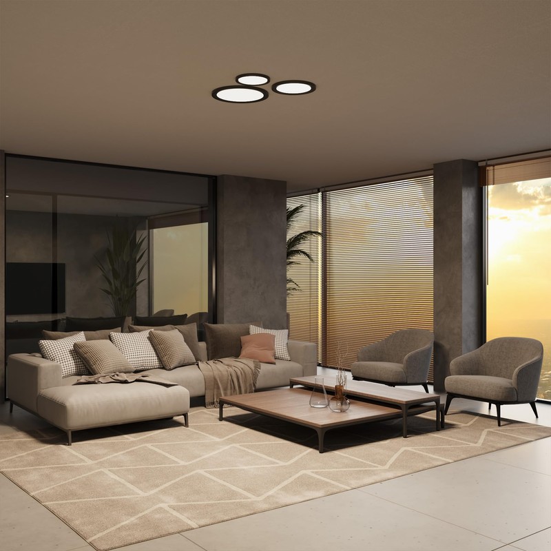 • VidaLite Slim Surface 16" - Black: The VidaLite Slim Surface-Mount LED Downlight Collection offers a modern, ultra-low profile lighting solution designed for easy installation and wide visual appeal. Available in multiple round sizes from 5" to 16", this series features edge-lit technology that delivers smooth, evenly diffused illumination with reduced glare.