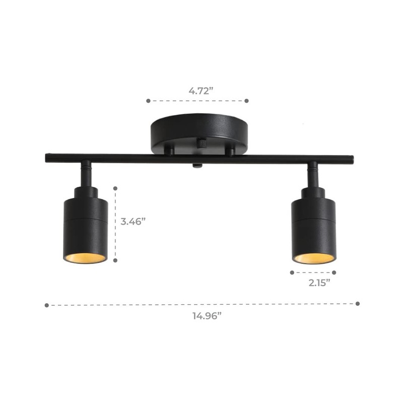 - INTERIOR TRACK LIGHT: This Dimmable fixed rail track light features two rotating spot lights dropping down from a black aluminum track. The lens cap of each head is accented by brushed gold for modern look.