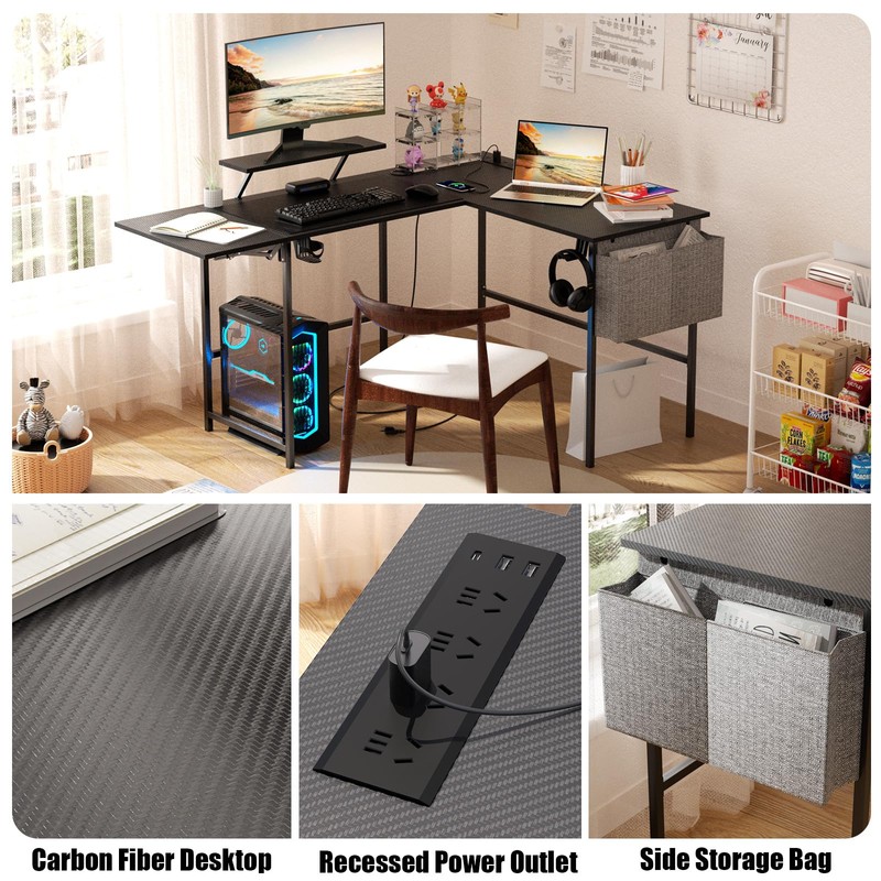 - 【Multiple Accessories】Our l shape desk comes with customized oversized organizer pockets, headphone hooks, and cup holders, which allow you to store more items, freeing up more space for studying, working, or other office activities.