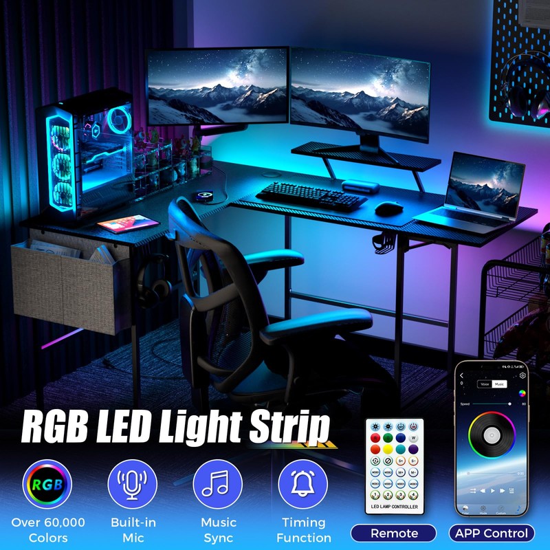 Maximize your space with our premium L-shaped gaming desk, designed for gamers and professionals who demand ergonomic comfort, smart features, and superior organization. This adjustable corner desk combines built-in LED lighting, power outlets, and bonus accessories in a sleek black design that fits any room.