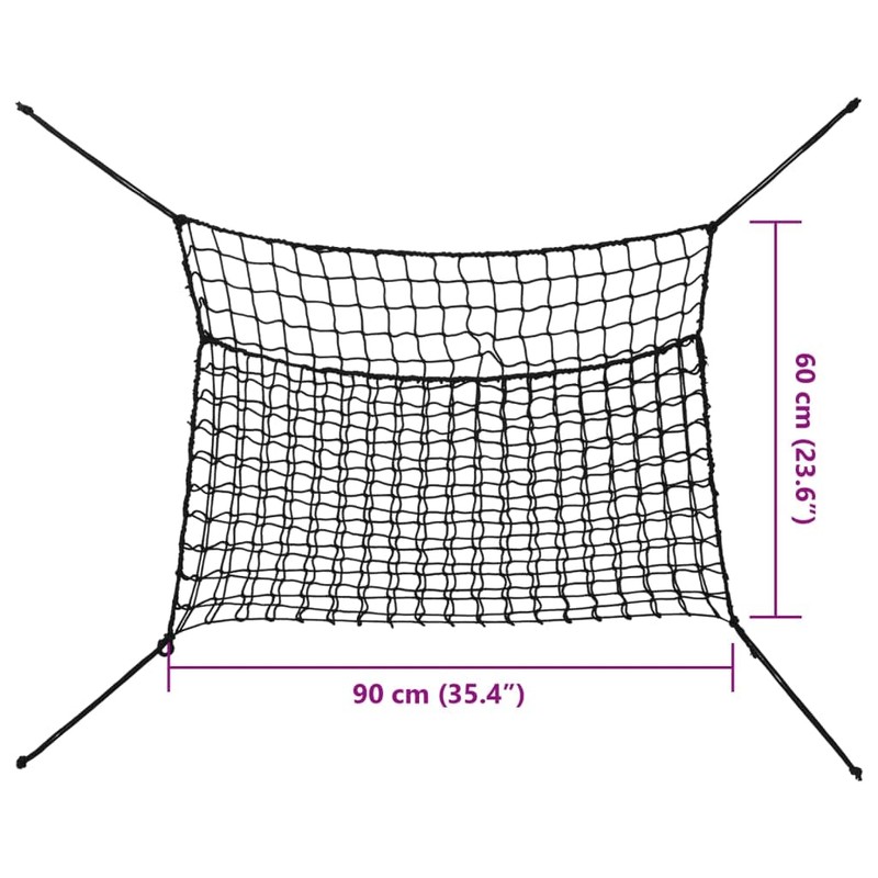 vidaXL Hay Nets - Slow Feed Hay Feeder for Horse/Pony - 2 pcs, Black, Rectangular, PP, 90x60 cm, Weather Resistant