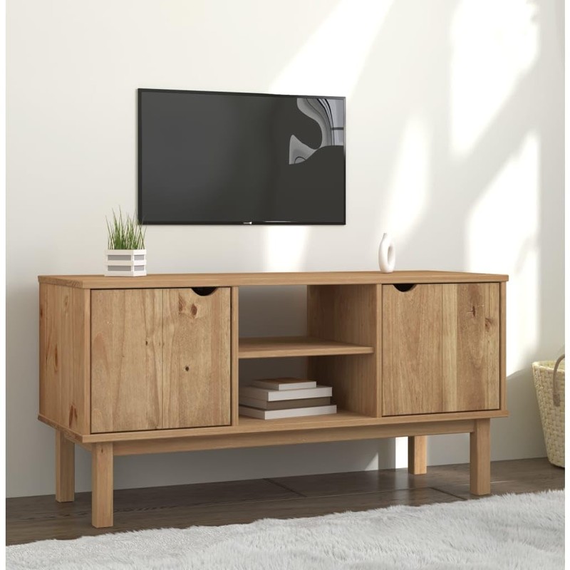 vidaXL OTTA TV Stand - Scandinavian Design, Solid Pine Wood, Stable Frame, Ample Storage, Can be Used for Displaying Decorative Items, Brown