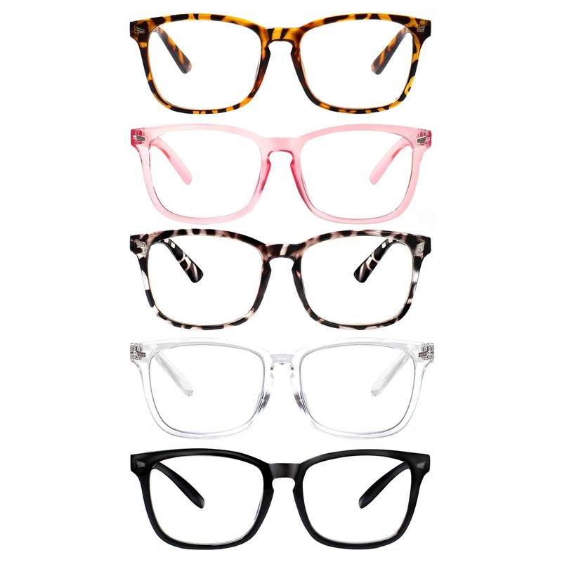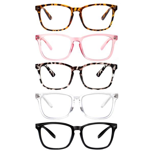 VIDEBLA 5 Pack Blue Light Blocking Reading Glasses,Spring Hinge Computer Readers for Women Men,Anti UV Ray Filter Nerd Eyeglasses (Mix, 0.00)