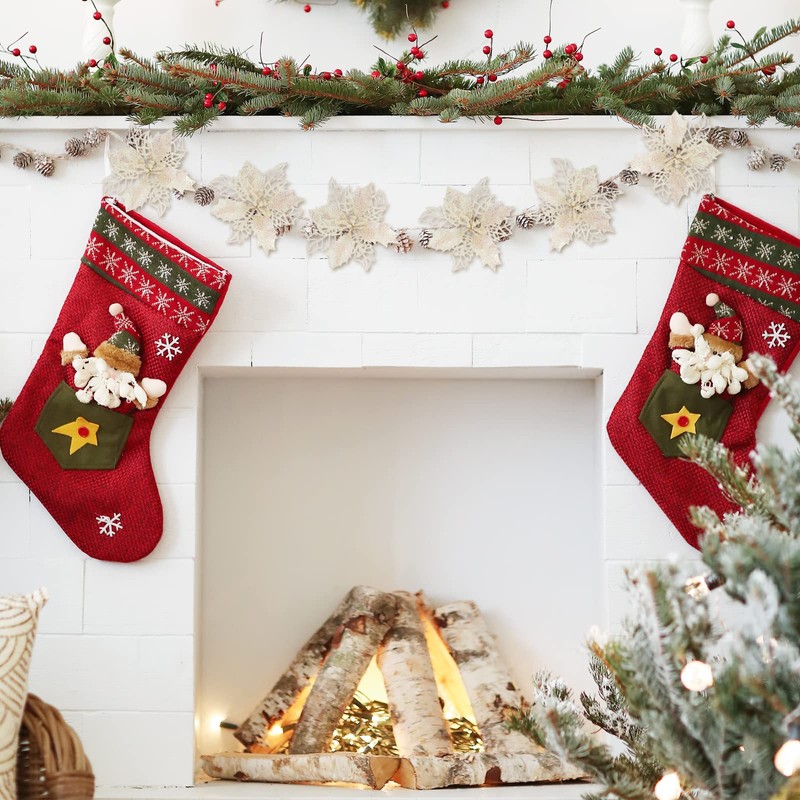 The poinsettia flower is decorated with glitter powder, shiny luster under the light can easily hang on the tree as an acute and beautiful decoration, adding color and festive touch to your Christmas.