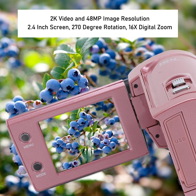 1. Camera Parameters: This camera supports 2K video resolution and 48MP image resolution; 2.4 inch screen, 270 degree rotation, 16X digital zoom, capturing all important details; Built in LED fill light brings bright and clear effects to the picture