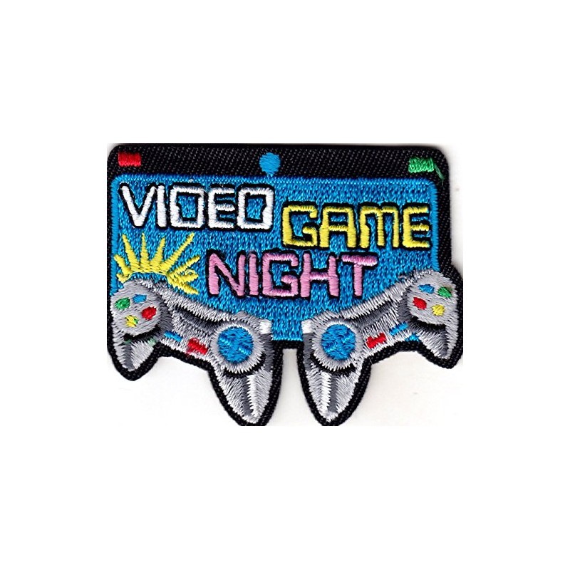 "VIDEO GAME NIGHT" - Iron On Embroidered Applique Patch - GAMBLING - GAMES - FUN