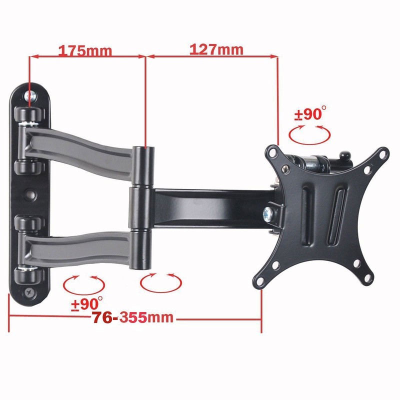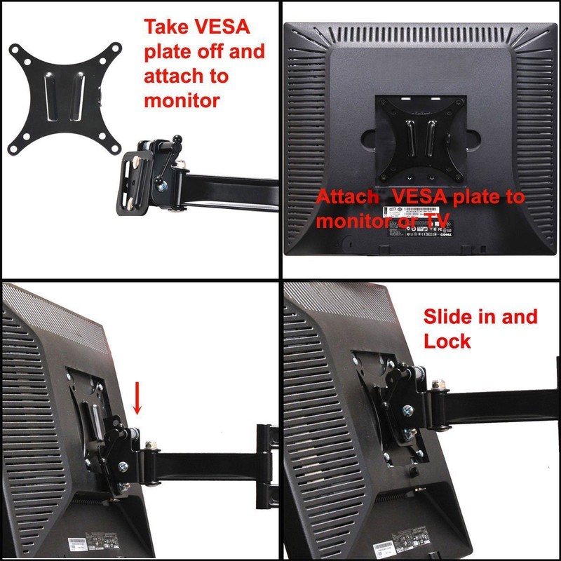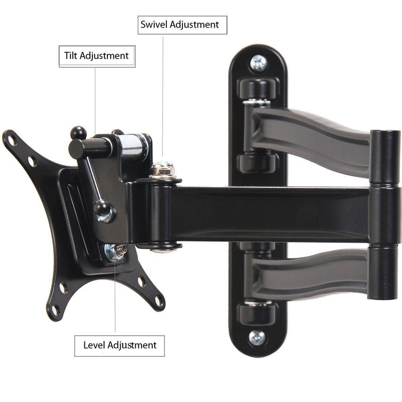 This adjustable articulating arm swing LCD TV monitor wall mount can extend out up to 14 inch, and folds flat against the wall. Aluminum alloy construction supports LCD monitor up to 33 lbs. Its classic black finish, 3 pivot points provides 0-20 degrees forward tilt, 180 degree swivel, and max 14 inch extends for virtually limitless adjustment. The VESA plate can be taken off to attach the display for easy installation. This two-link arm design offer elegantly look for offices, conference rooms, merchandising displays, hotel rooms or any room in the house. VideoSecu brand new design mount, please report to Amazon if you receive a mount without VideoSecu logo.