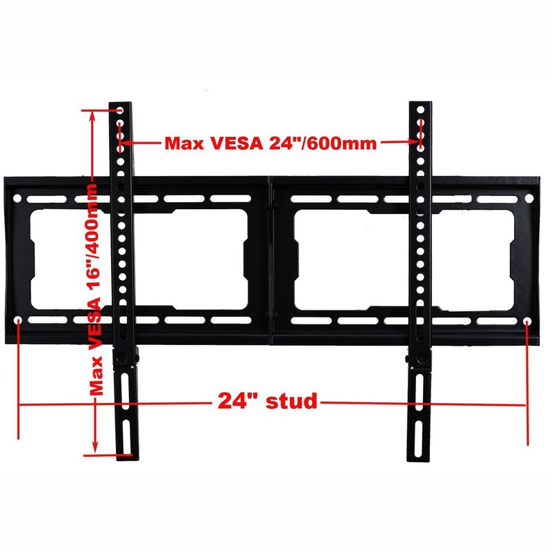 - The ultra-slim wall mount keeps the screen low 1.5" profile; Fits up to 24" studs