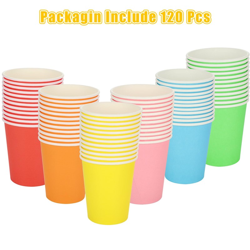 VIDETOL 120 Pcs Paper Party Cups, 250ml/9oz Multicolor Party Cups, Disposable Paper Drinking Cups for Party, Picnic, Weddings, Birthday and Christmas