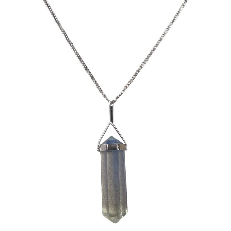VIE Double Point Pencil Pendant, Silver Chain (Opalite)