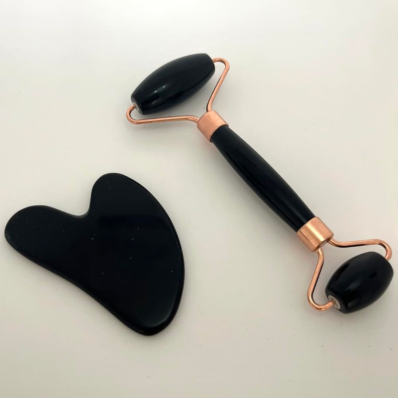 VIE Gua Sha and Crystal Face Roller Gift Set, Black Obsidian