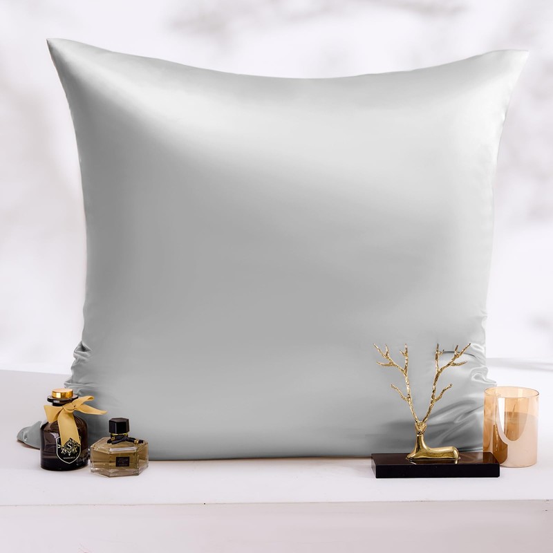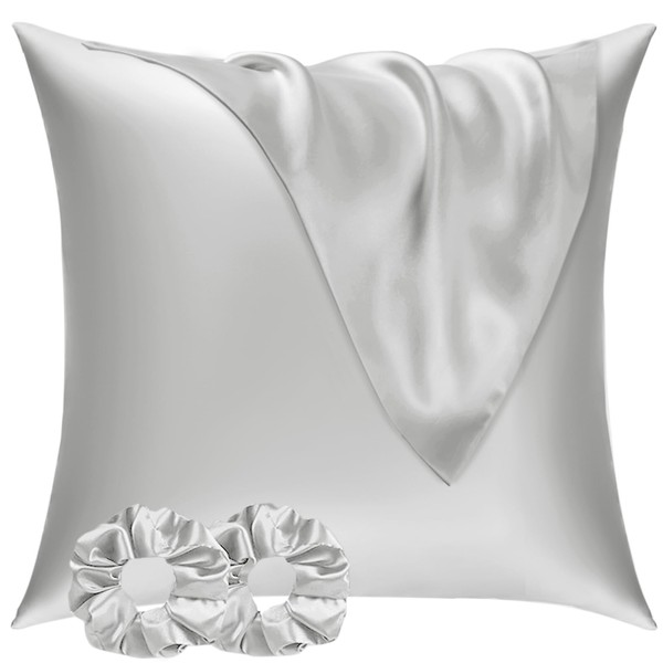 Vielit Satin Pillowcase for Hair and Skin 60x60 2 Pack & 2 Scrunchies, Soft as Silk Pillowcase for Hair and Skin,Easier Care than Silk Pillow Case, Light Grey Pillowcases Envelope Gift for Women