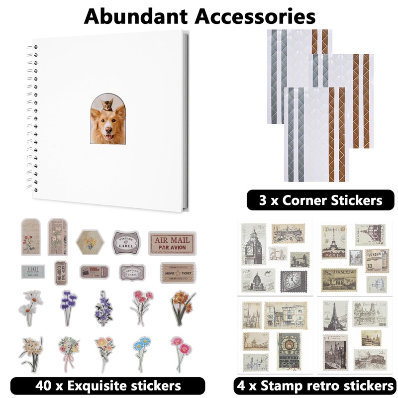 - DIY Scrapbook: This vintage scrapbook cover is cardboard with an arched window, so you can replace the photos as you like. We have a wide range of accessories including 3-color corner stickers and two sets of different styles of stickers enough for your daily DIY needs.